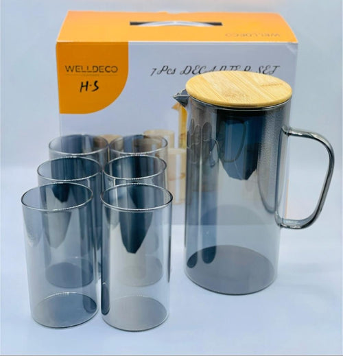 Welldeco 7-Piece Smoked Glass Decanter Set – 1L Jug & 6 Glasses